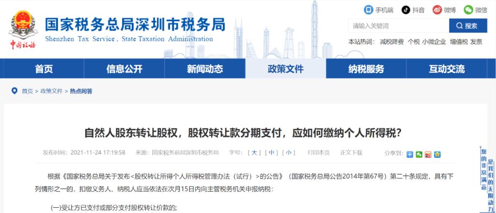 发布时间:2021-11-24国家税务总局深圳市税务局