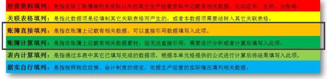 其中,我们应主要关注来源于账簿,甚至还需分析计算后才能填写的内容(即“账簿直接填列”和“账簿计算填列”。)。