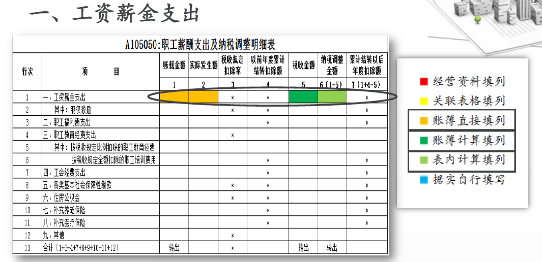 A105050:《职工薪酬纳税调整明细表》中工资薪金支出的数据从哪里来的?