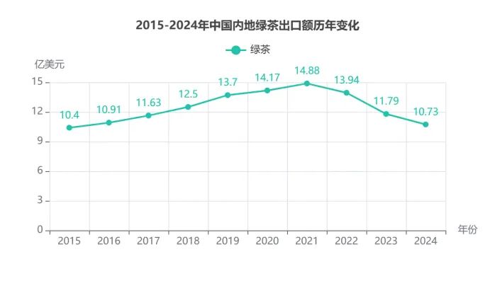 数据显示,2024年中国内地茶叶出口额14.19亿美元,同比减少18.39%;出口量37.41万吨,同比增长1.79%;均价3.79美元/Kg,降幅19.83%。