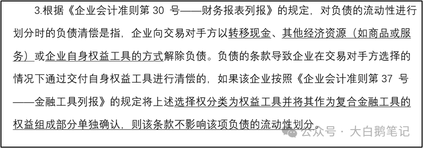 三、企业将选择权分类为权益工具并将其作为复合金融工具的权益组成部分单独确认,则该条款不影响该项负债的流动性划分。