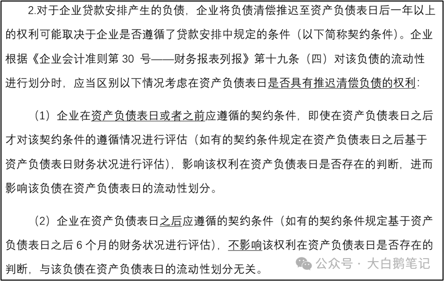 关键点:只要条件的 “考核基准” 是资产负债表日或之前的情况,哪怕实际检查是在之后,也会影响你在资产负债表日有没有 “推迟还钱的权利”。