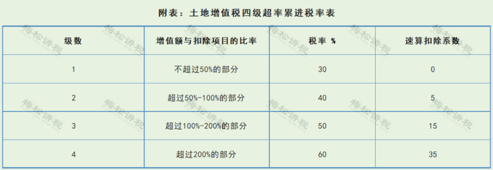 土地增值税是对转让土地使用权、地上的建筑物及其附着物并取得收入的单位和个人征税的税种。土地增值税根据增值额适用不同的税率,具体规定如下