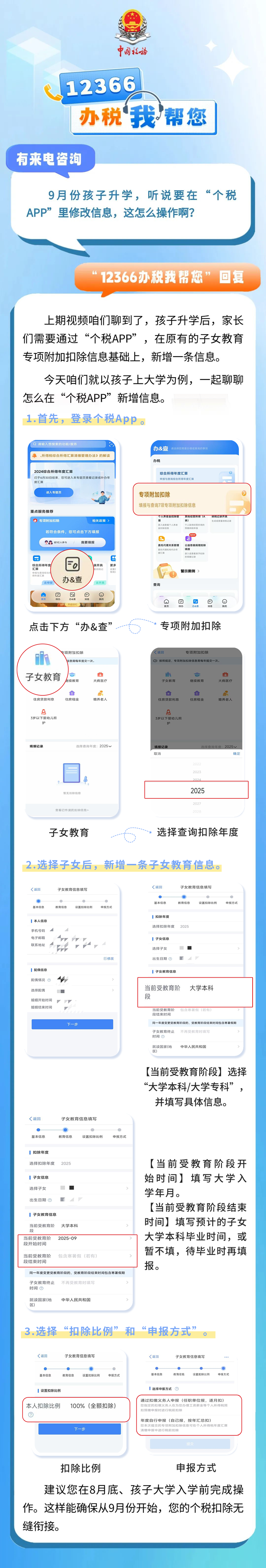 有来电咨询 :9月份孩子升学,听说要在“个税APP”里修改信息,这怎么操作啊?一起来看看回复吧↓