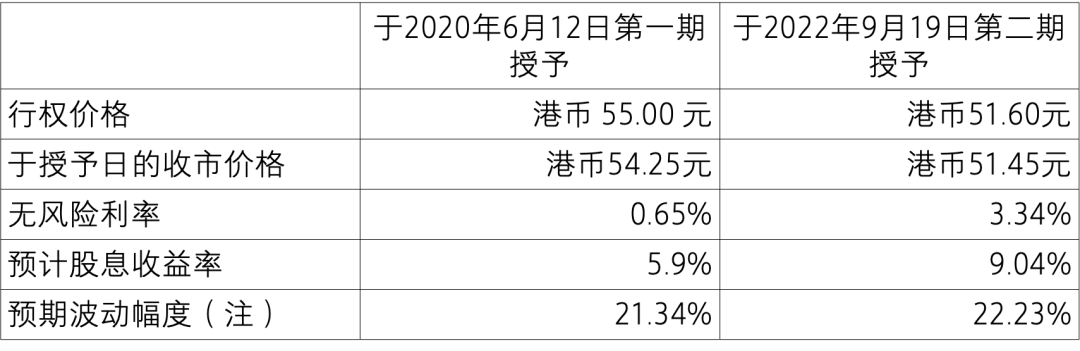 于 2022 年 9 月 19 日(“第二期授予”),本公司董事会根据上述股东大会的授权,批准向 10,988 位股票期权激励计划参与者授予合共涉及 607,649,999 股股份的股票期权,占本公司届当时已发行股本的 2.8%。行权价格为每股港币 51.60 元。