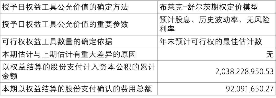 2024 年度计入当期损益的股票期权相关成本为人民币 4.89 亿元(2023 年度:人民币 7.17 亿元)。截止 2024 年 12 月 31 日,资本公积中确认以权益结算的股份支付的累计金额为人民币 22.62 亿元。