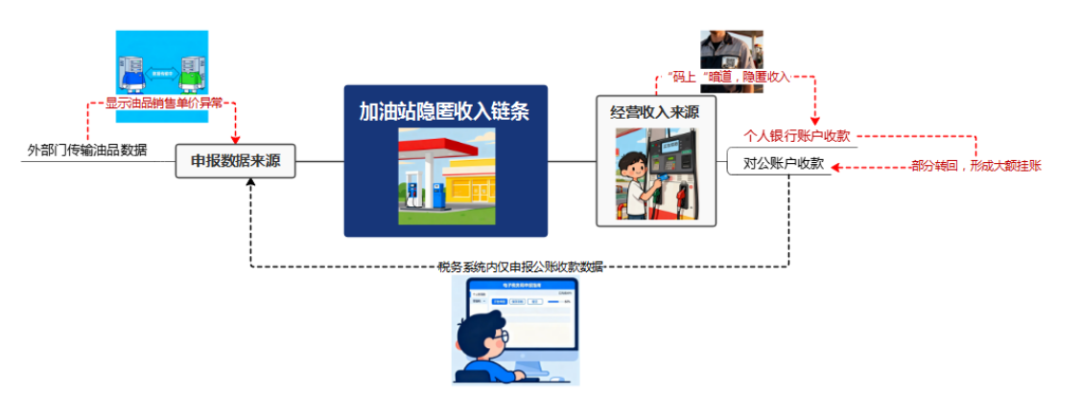 带着这一问题,检查人员再次约谈该加油站负责人。该负责人先是辩称“收款码”与加油站经营无关,但是当检查人员拿出“二维码”的开户信息、流水记录等相关证据后,该负责人最终承认是自己安排加油站员工办理农产品收购部登记并开设员工个人银行账户,目的是设立账外收款渠道、隐匿销售收入。至此,该加油站通过个人银行卡收款码收取购油款,隐匿收入的违法手段就此浮出水面。
