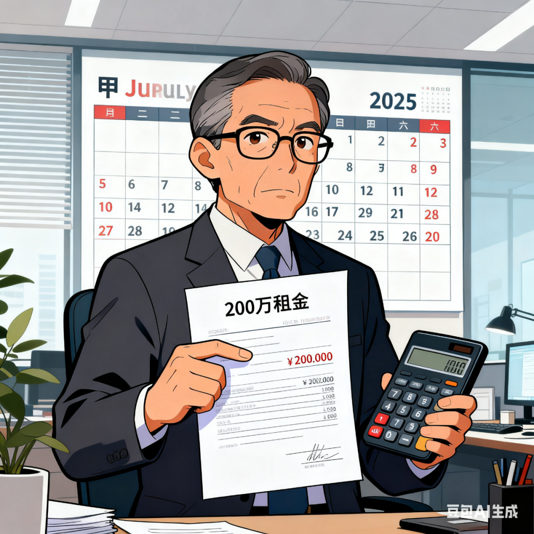例:甲公司 2025 年7 月一次性收全年租金 200 万(不含税)。