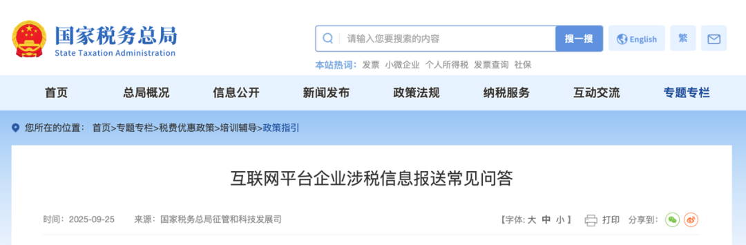 2025年9月25日,国家税务总局针对互联网平台企业在涉税信息报送中的常见问题发布了相关解答(以下简称“《问答》”),内容涵盖已注销经营者、经营者变更等多种情形下的具体操作要求。其中有两点内容尤为值得关注: