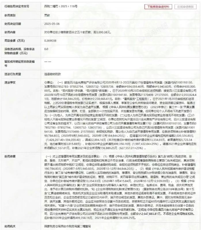 案涉公司长安国际信托股份有限公司接受四川金光房地产评估有限公司开具的17份增值税专用发票,价税合计60万元,并申报抵扣进项税额;接受四川三实建设有限公司开具的3份增值税专用发票,价税合计223.86万元,并申报抵扣进项税额。上述20份增值税专用发票已证实虚开,税务机关根据当事人傅某、李某在公安机关所做询问笔录、资金回流等证据资料,认定案涉公司在明知与开票方四川金光房地产评估有限公司、四川三实建设有限公司没有真实业务的情况下,让开票方为自己开具增值税专用发票并申报抵扣税款,属于让他人为自己虚开增值税专用发票的行为,应作进项税转出补缴增值税19.07万元,补缴2020年至2021年企业所得税65.63万元。