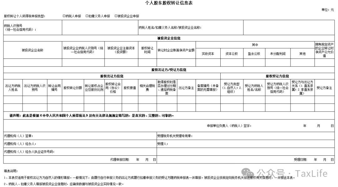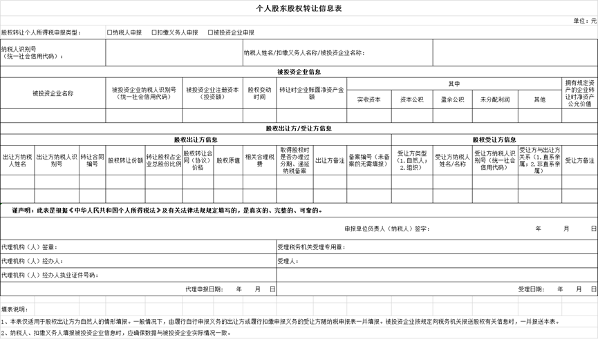 贵州省税务局在指南中对《个人股东股权转让信息表》的填报要求进行了说明,我们总结一些细节,供大家参考: