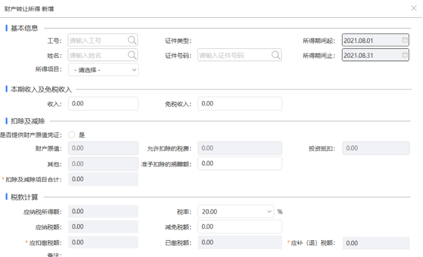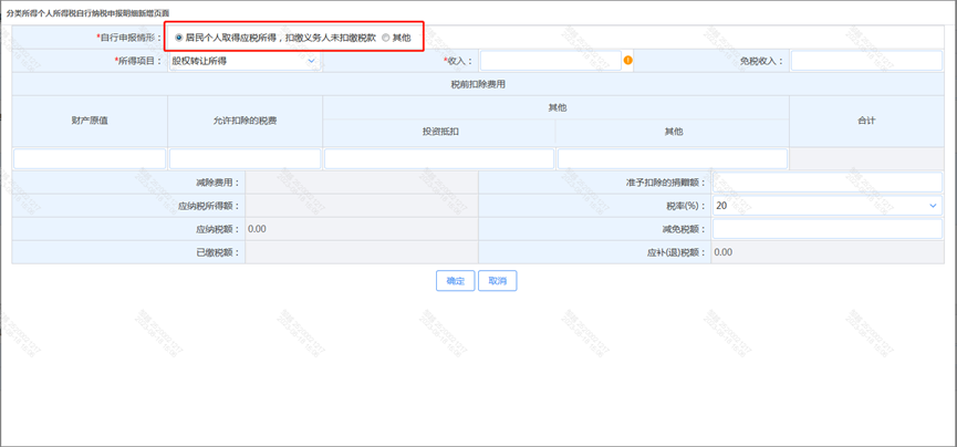 (1)股权转让个人所得税申报类型:根据个人所得税申报实际情况填写。重点注意扣缴申报时,准确区分是被投资企业申报还是扣缴义务人申报,勿混淆。