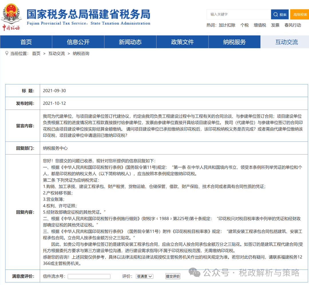 感谢您的咨询!上述回复仅供参考,具体以法律法规和法律法规授权主管税务机关作出的相关规定为准。若您对此仍有疑问,请联系福建税务12366或主管税务机关。