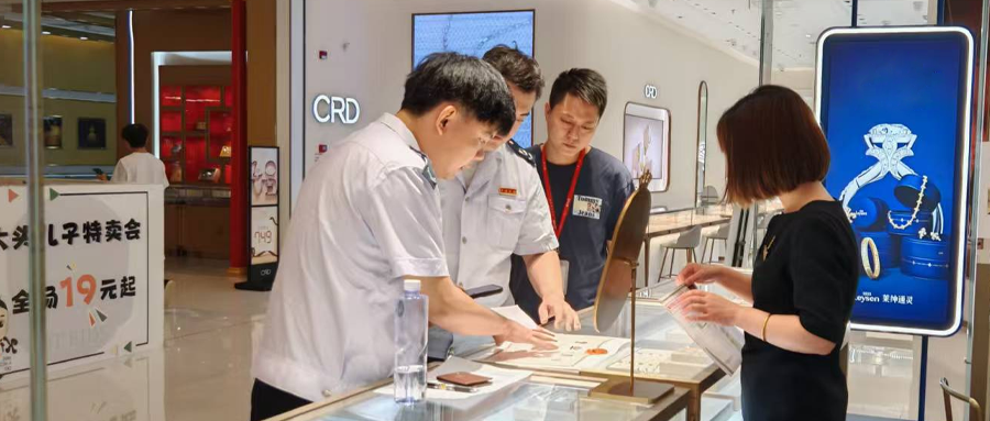 国家税务总局泰州市税务局税务人员对辖区内金银首饰零售商户开展实地摸排。 周润之/摄