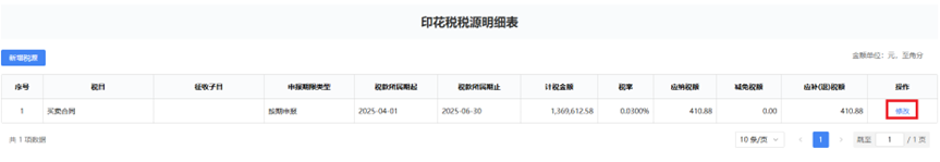 进入“印花税税源明细表”界面,点击右侧【修改】按钮。