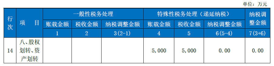 表1A105100企业重组及递延纳税事项调整明细表