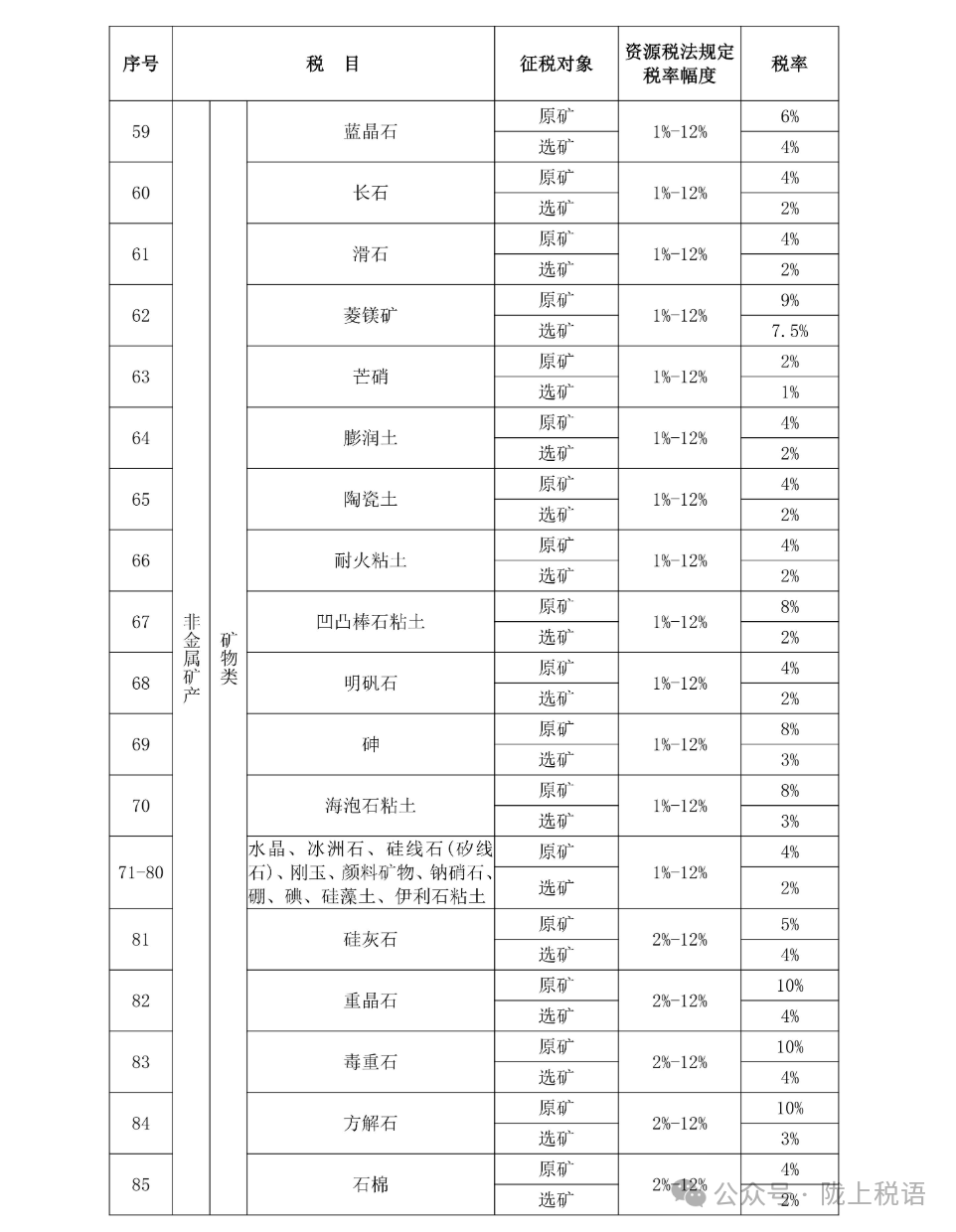 附:甘肃省资源税税目税率表