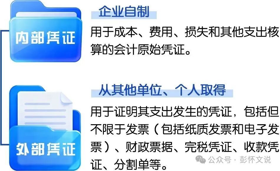 税前扣除凭证按照来源分为内部凭证和外部凭证,两者均可以作为税前扣除的依据。内部凭证部是指企业自制用于成本、费用、损失和其他支出核算的会计原始凭证。内部凭证的填制和使用应当符合国家会计法律、法规等相关规定。外部凭证是指企业发生经营活动和其他事项时,从其他单位、个人取得的用于证明其支出发生的凭证,包括但不限于发票(包括纸质发票和电子发票)、财政票据、完税凭证、收款凭证、分割单等。