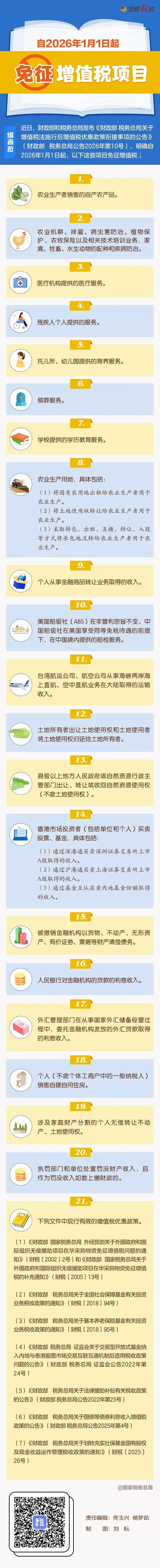 自2026年1月1日起哪些项目免征增值税?税局官方一图解答!