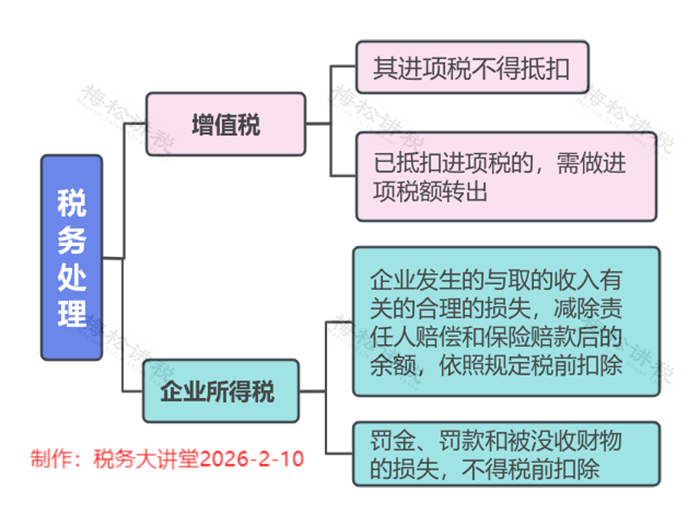 ①作为资产损失处理:属于生产经营活动中实际发生的资产损失,准予在企业所得税前扣除;增值税进项的处理分下列两种情况: