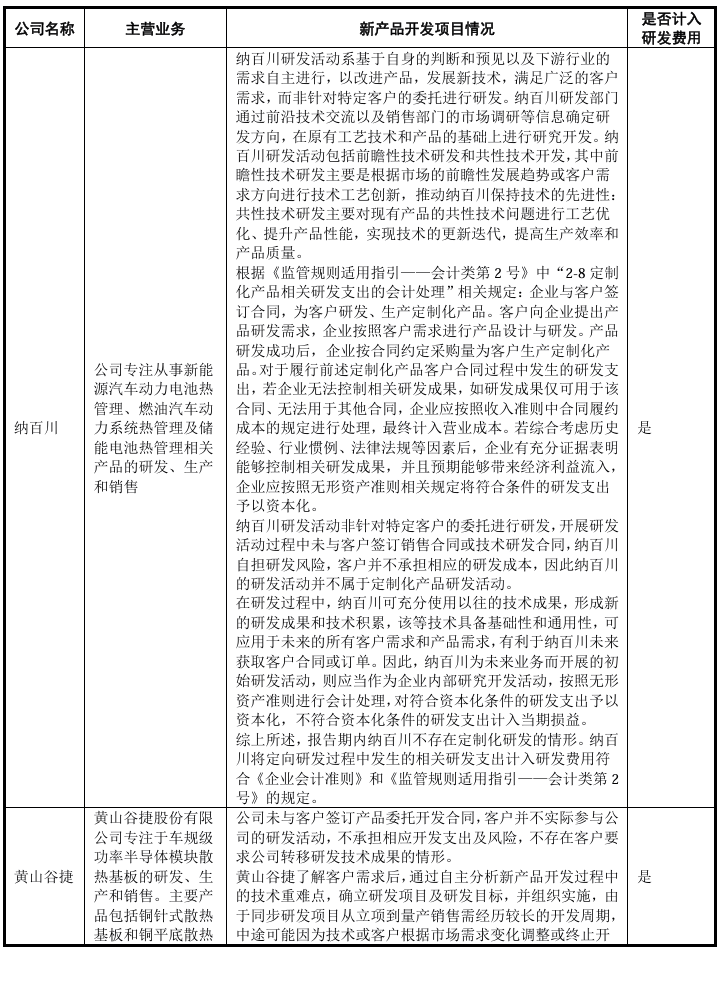 如上表所示,汽车零部件行业内企业普遍存在新产品开发项目的情形,由于汽车零部件企业的新产品开发通常包含大量研究性质的工作,如新材料研发、产品开发、工艺验证、样品试制等,且客户并不承担相应的研发成本,研发项目存在开发失败的风险,将相关开发费用归集计入研发费用系行业通行做法。经对比同行业可比公司会计政策及财务处理实务,发行人对新产品开发费用的核算方法与行业惯例保持一致,不存在重大差异。