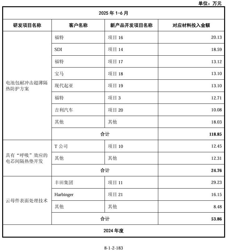 发行人采用“基础研发与产品开发并行驱动”的技术迭代模式,将新产品开发项目按技术路径或创新目标纳入通用研发项目体系,在响应客户需求过程中实现核心技术的持续积累与复用。一方面,公司针对热失控防护材料的核心性能指标,持续开展材料体系优化、新技术研发及工艺改进等基础研究工作;另一方面,深度参与下游客户新车型及新电池平台的设计开发流程,基于客户具体应用场景提出的差异化性能需求,开展定制化新产品开发。