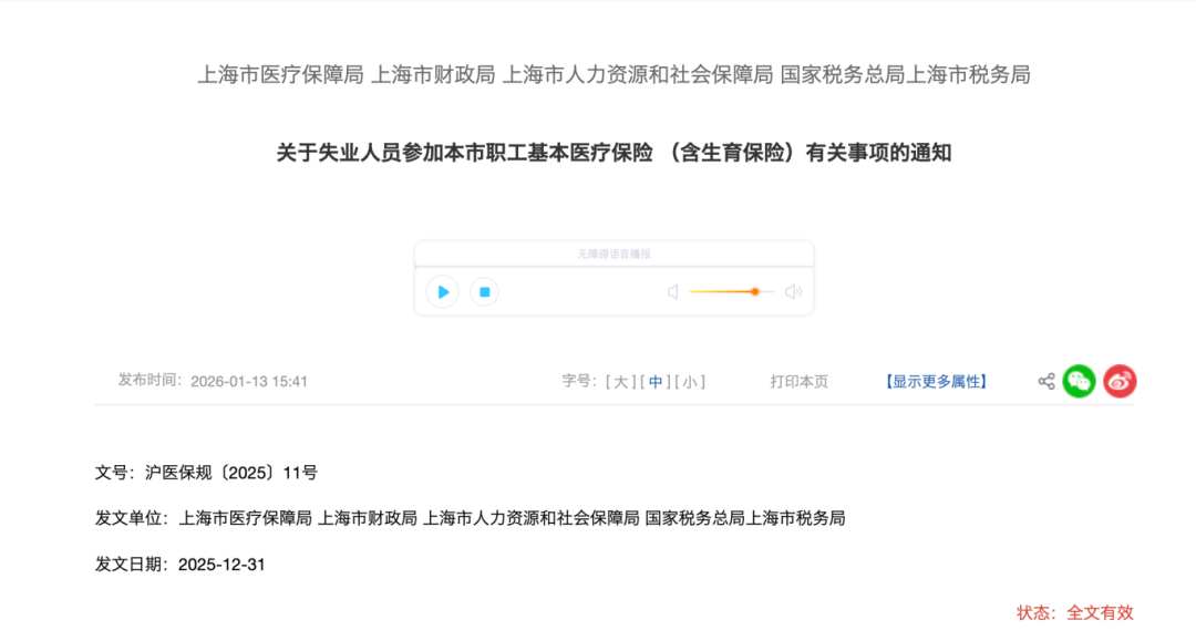 上海市医保局发布《关于失业人员参加本市职工基本医疗保险(含生育保险)有关事项的通知》。