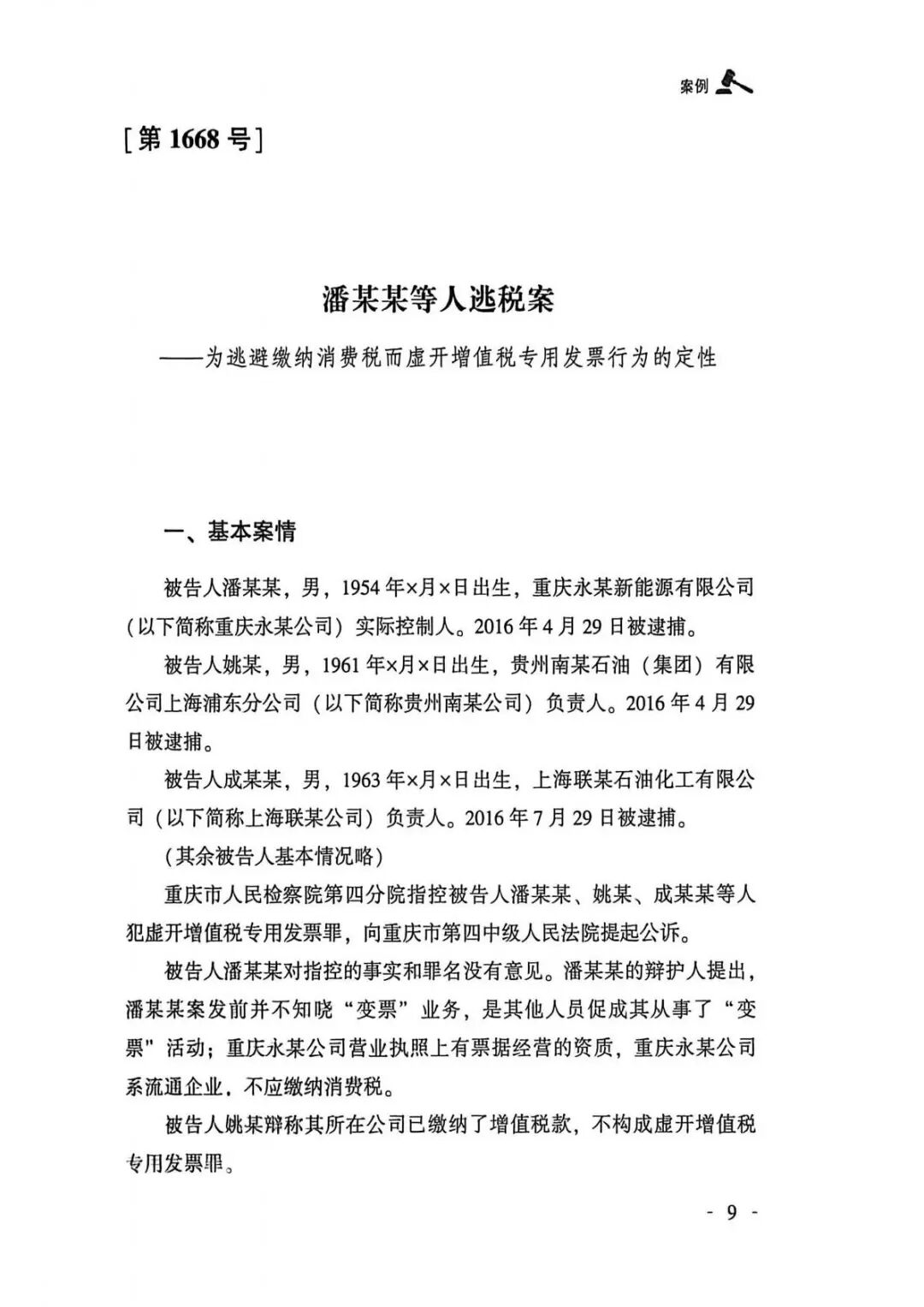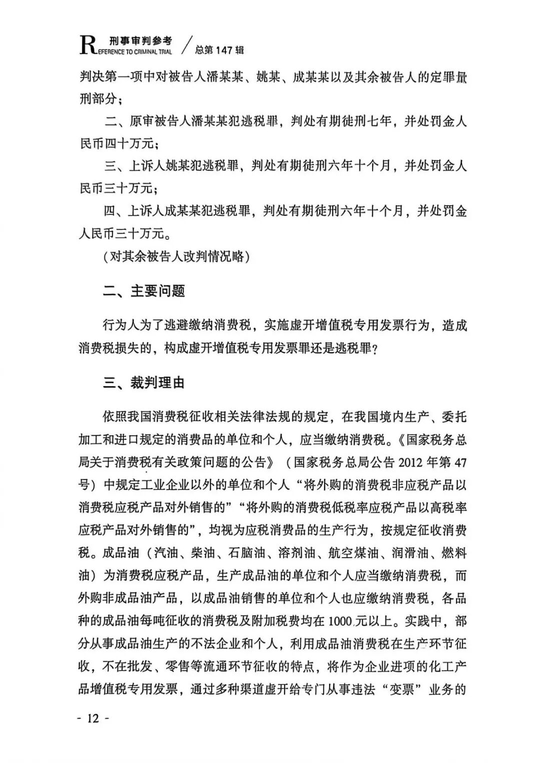 2026年3月,最高人民法院刑事审判第四庭编写的《刑事审判参考(惩处危害税收征管犯罪专辑)》一书在人民法院出版社出版发行。该书收录的潘某某等人逃税案是一起典型的、传统的石化贸易公司变票案件。本案的司法裁判结论系按照逃税罪论处,对于当前成品油模块上线后出现的新型变票逃税案件具有重要的和直接的指导借鉴意义,对于过去一段时间以来按照虚开专票罪论处的错误判决也有积极的纠错意义,呼吁各地人民法院应当依循该起案例的罪名适用逻辑裁判类案。