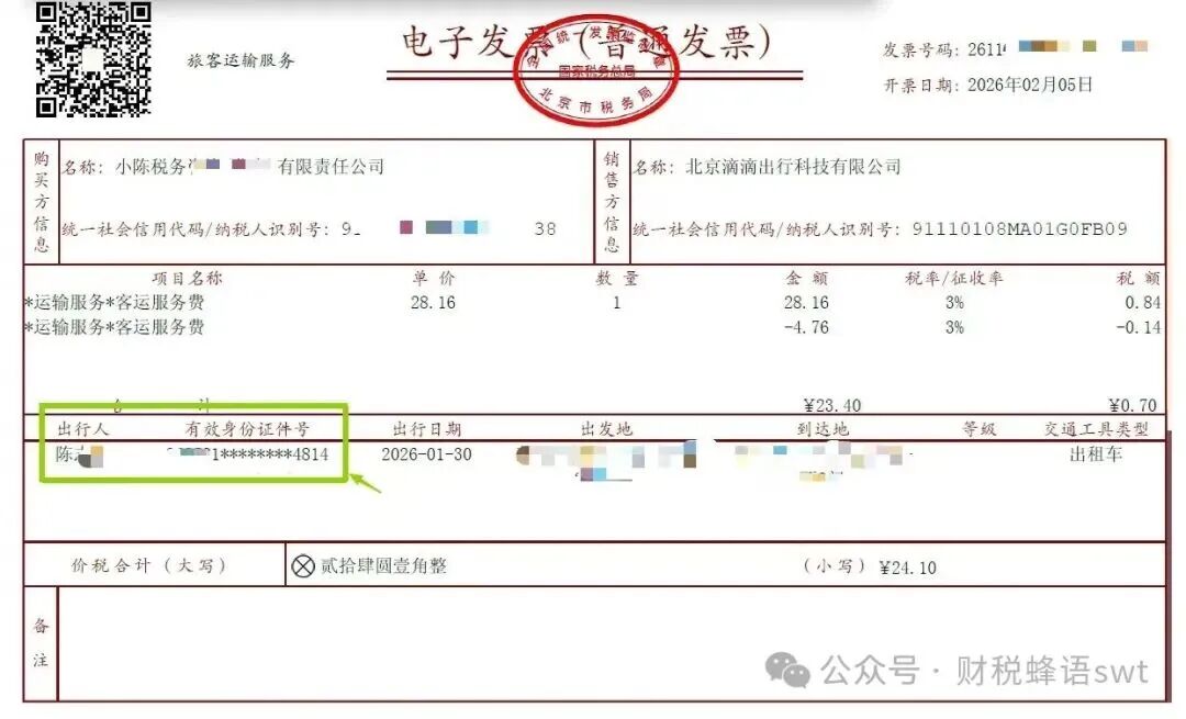 自2024年12月1日起,纳税人取得旅客运输发票需为全面数字化的电子发票,应注明出行人及有效身份证号等信息。