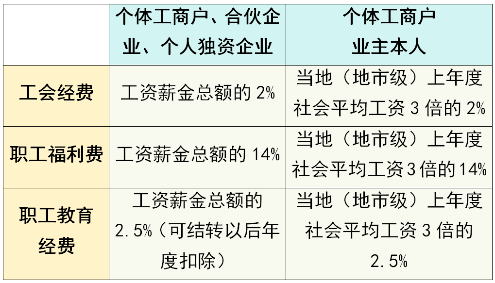 向当地工会组织拨缴的工会经费、实际发生的职工福利费支出、职工教育经费支出这三项经费的具体扣除标准如下↓