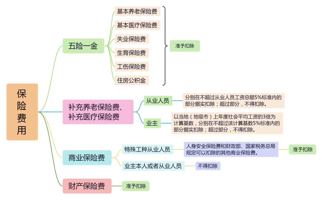 不同类型保险费用的扣除标准具体规定如下↓