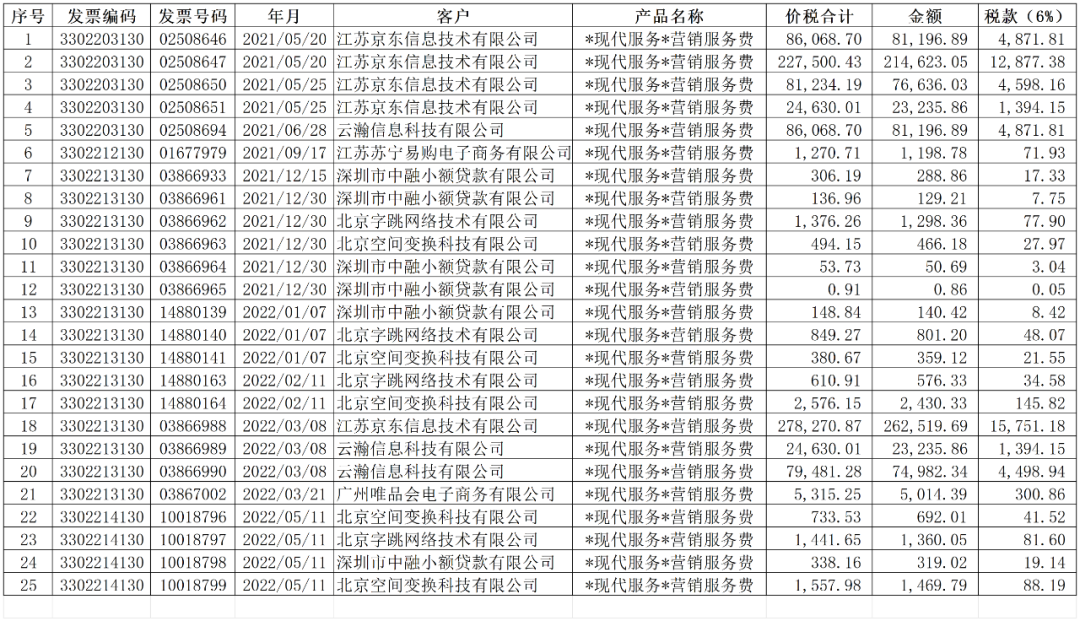 违法事实:2021-2022年经营期间,你单位通过抖音、京东、苏宁、唯品会等线上平台向客户销售奶粉等产品,其中:直接向客户(消费者)收取货款的已按13%税率向税务机关申报纳税;向平台收取货款的,因平台有优惠补贴、优惠、京豆、京券、礼金优惠等方式让利给客户,应各平台要求,你单位向平台单位开具6%税率的增值税专用发票,开票内容为营销服务费、推广支持服务费等,按6%税率申报纳税。经统计,2021-2022年度你单位向各平台按6%增值税税率开具61份增值税专用发票,具体明细如下: