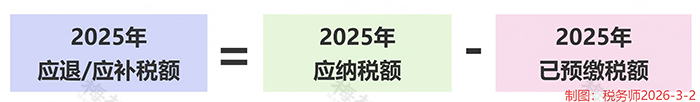 公式三:算最终应退 / 应补税额(对比已缴税额)