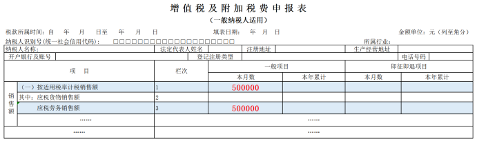 纳税人本期按适用税率计算增值税的应税服务(含加工修理修配服务)、无形资产、不动产的销售额填写在本栏。