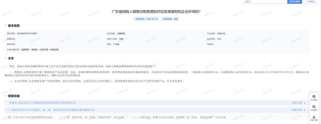 广东省纳税人销售动物粪便如何征收增值税和企业所得税?