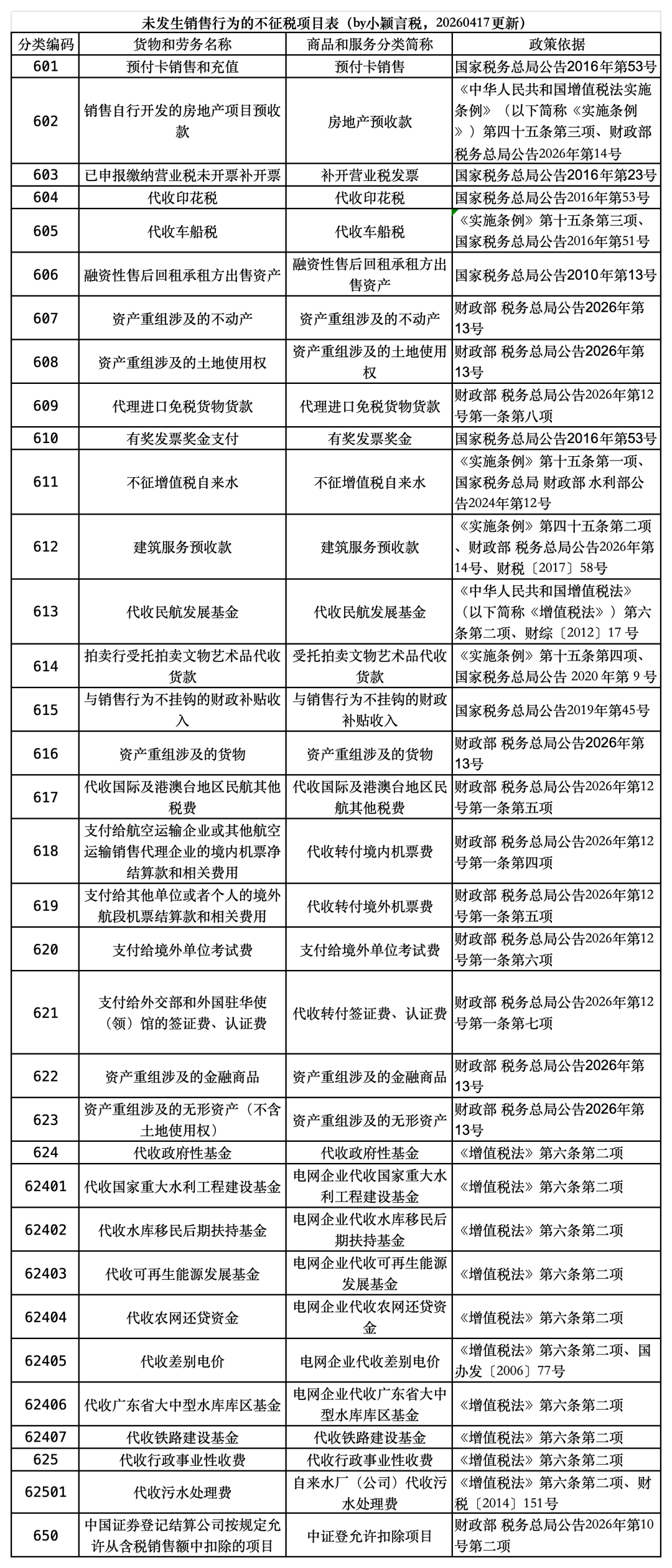 不征税发票分类编码650,分类编码简称:中证登允许扣除项目。