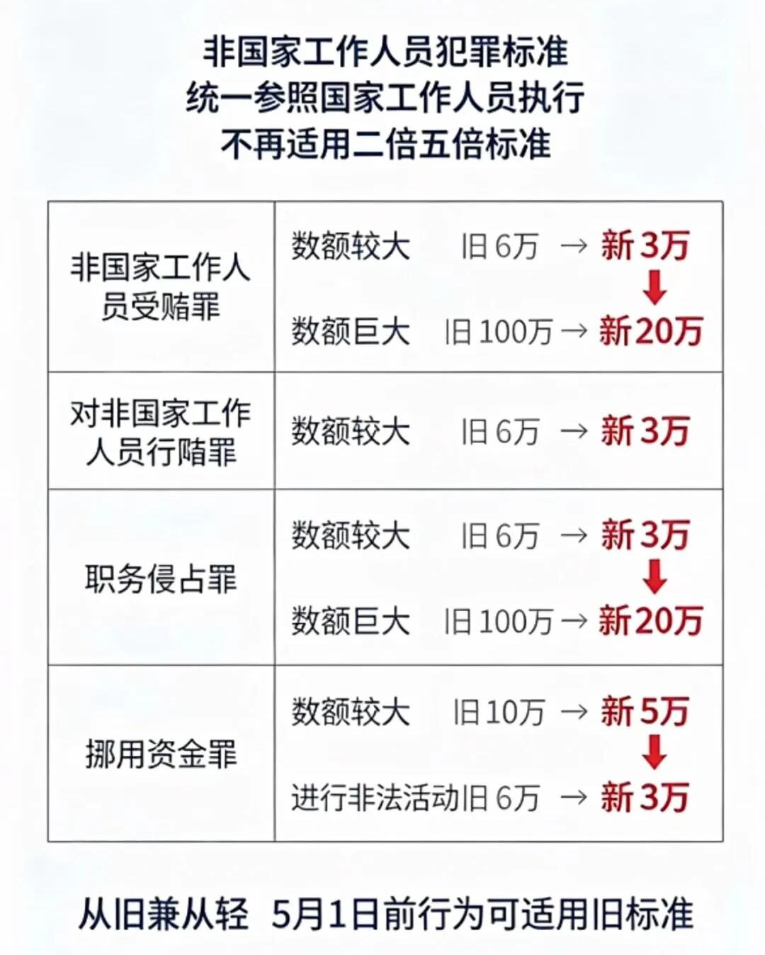 从5月1日起,民企人员收受贿赂,3万元就立案,20万元就算“数额巨大”。