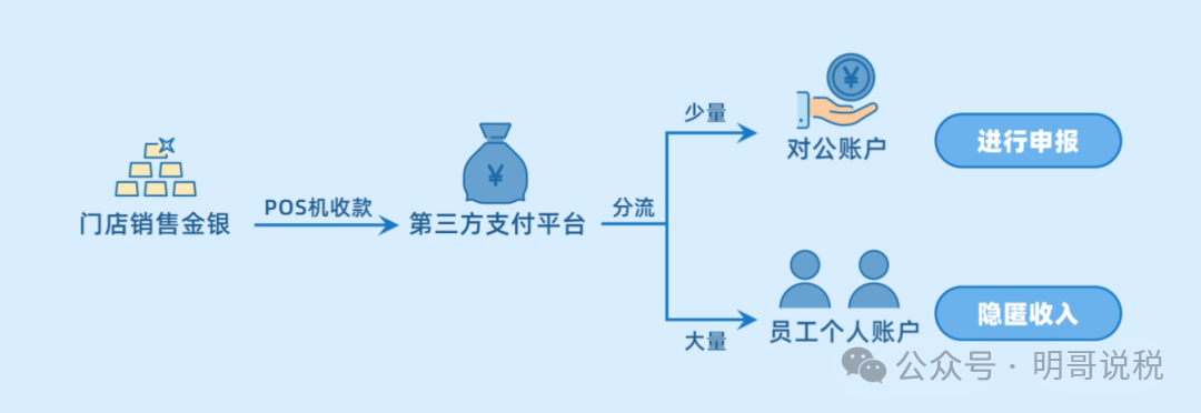 检查人员对这一对公账户的流水进行核对,并与门店留存的销售台账、库存进出记录逐一比对,结果发现账户收入、销售数据、库存变动三者完全无法对应。检查人员依法调取店铺负责人及员工的个人银行账户开展核查时,发现多个私人账户存在高频次、大额度的资金流入,资金入账时间与门店日常营业时段吻合,单笔金额从数千元到几十万元不等,符合黄金珠宝零售的交易特点。进一步核查显示,这些资金均通过大众普遍使用的第三方平台支付,与门店POS机刷卡记录、线上线下收款账单信息一一吻合,形成了完整的资金证据链。