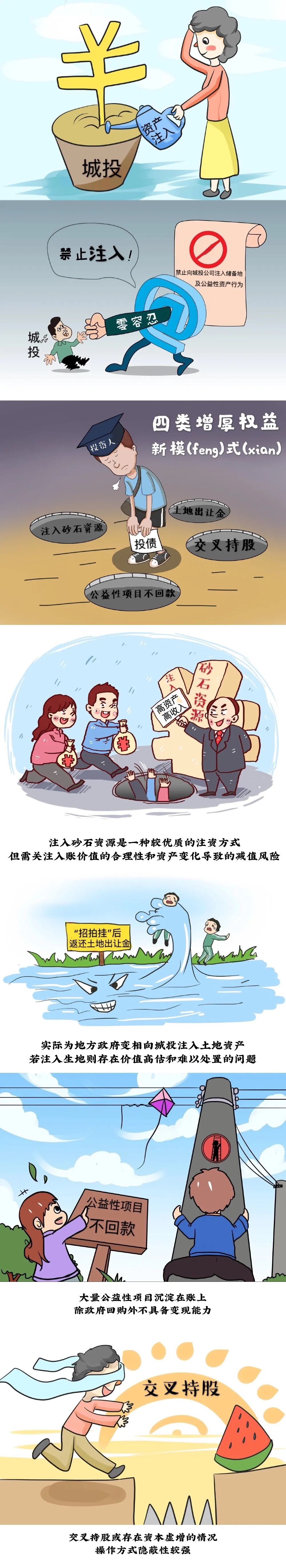 为限制城投资产“注水”和过度“包装”的情况,注入储备地及公益性资产的行为已被充分限制,除了传统的注资方式外,如上文揭示,城投公司存在一些新型增厚权益的模式,甚至存在一些政策“擦边球”的行为。权益增厚对于城投公司来说固然是好事,可以增强资产实力、降低债务负担,但是在分析该行为时仍然需透过现象看本质,注意注入资产的质量和注资模式风险。