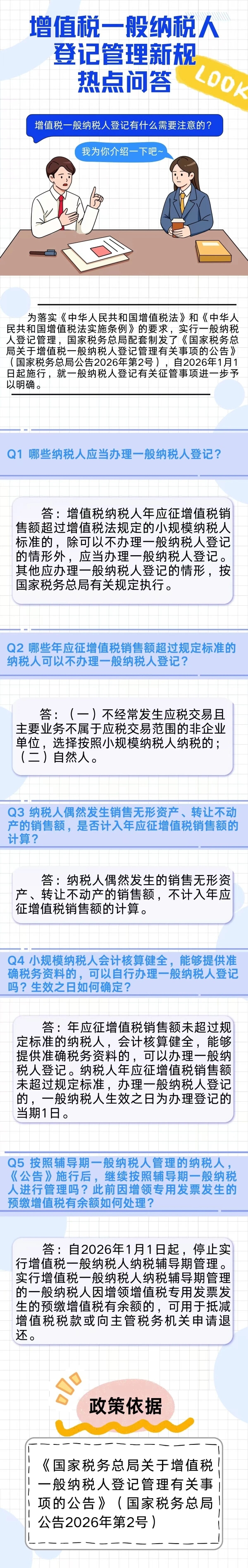 一问一答:增值税一般纳税人登记管理新规热点问答