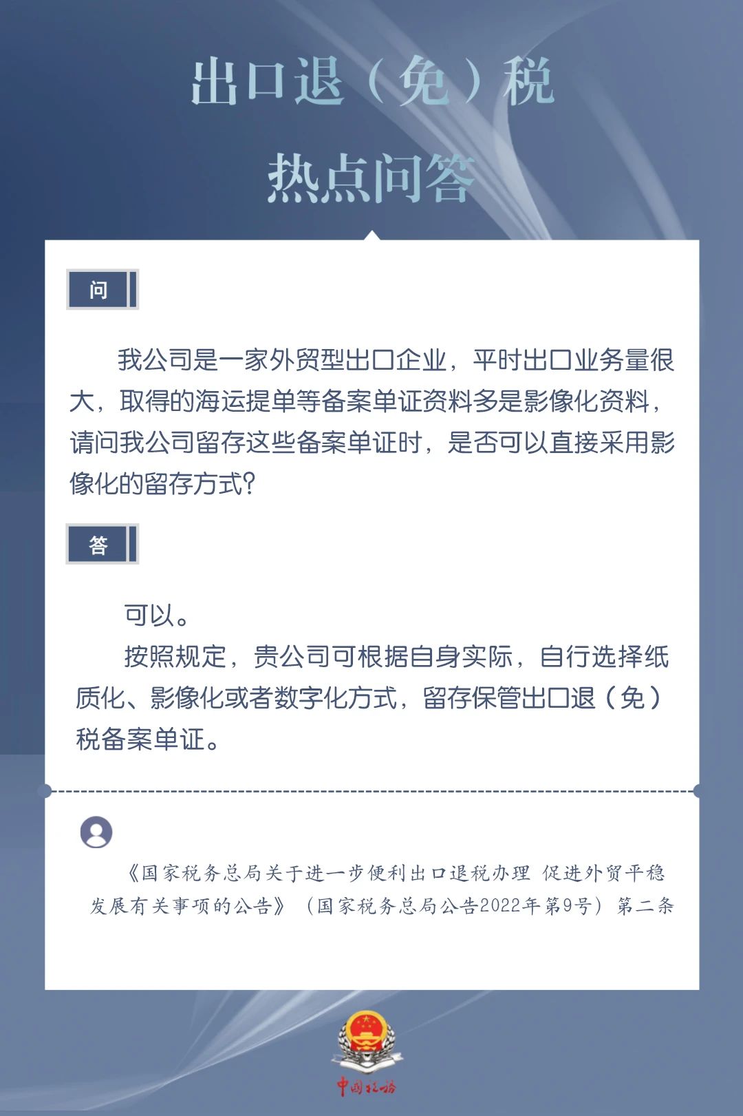 为进一步加力支持包括中小微企业在内的广大经营主体开展外贸出口业务,便于企业掌握出口退税现行规定、及时了解出口退税便利化举措,商务部、国家税务总局针对企业普遍关心的出口退税热点问题,整理了问答集锦。一起来看看吧↓