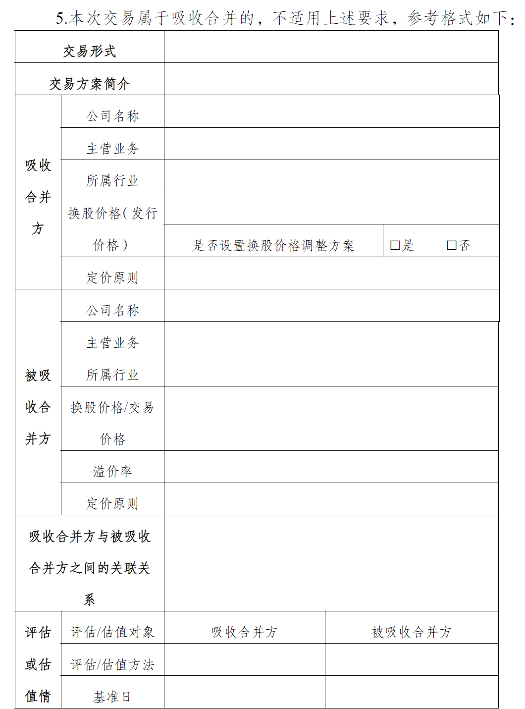 交易方案涉及吸收合并的,应当披露换股价格及确定方法、本次吸收合并的董事会决议明确的换股价格调整方案、异议股东权利保护安排、债权人权利保护安排等相关信息。