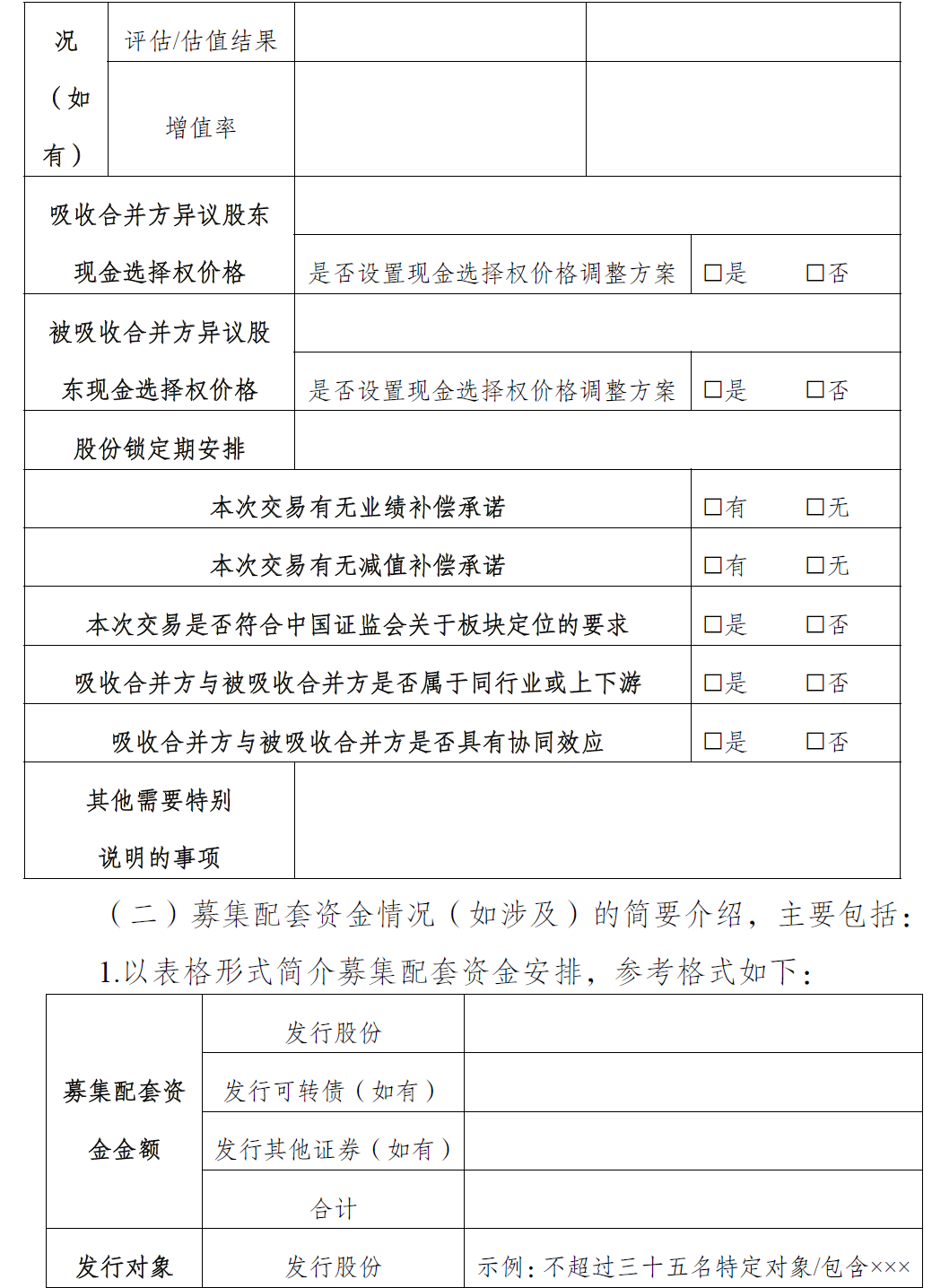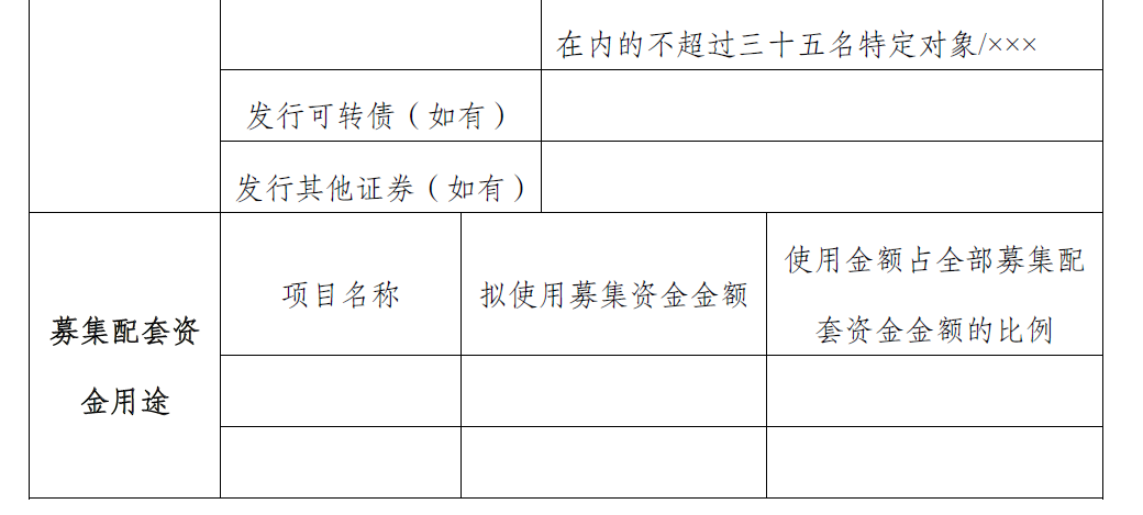 - 上市公司发行股份、可转债等募集配套资金的,应当比照第(一)项第 4 目以表格形式简介发行情况;