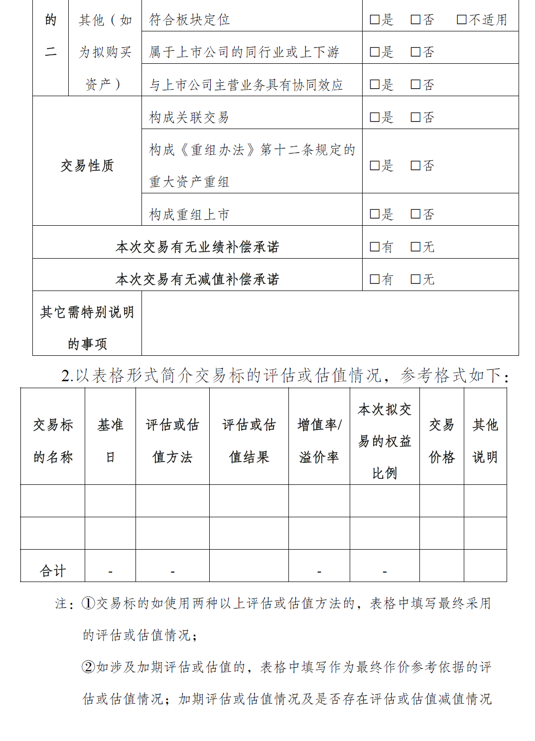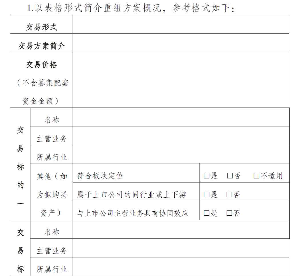 0-1 并购重组方案概况表
