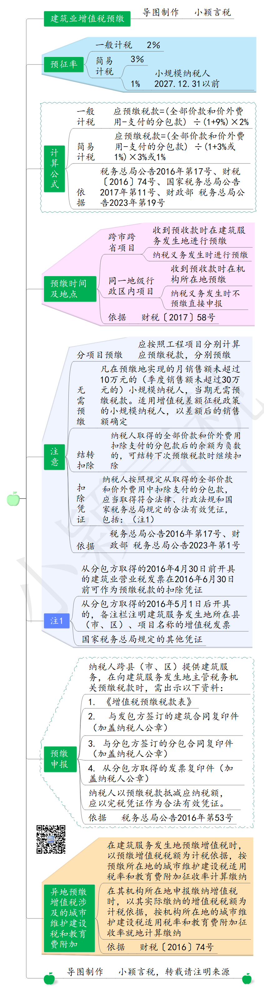 上述事项之所以规定要预缴税款,一方面为了平衡税款入库的时间性差异,另一方面是为了平衡税款入库的地域差异,建筑业也是如此,本文从预缴地点、预缴时间、预缴填报、预缴计算、发票开具、法律责任、会计处理七方面对建筑业增值税预缴进行梳理。