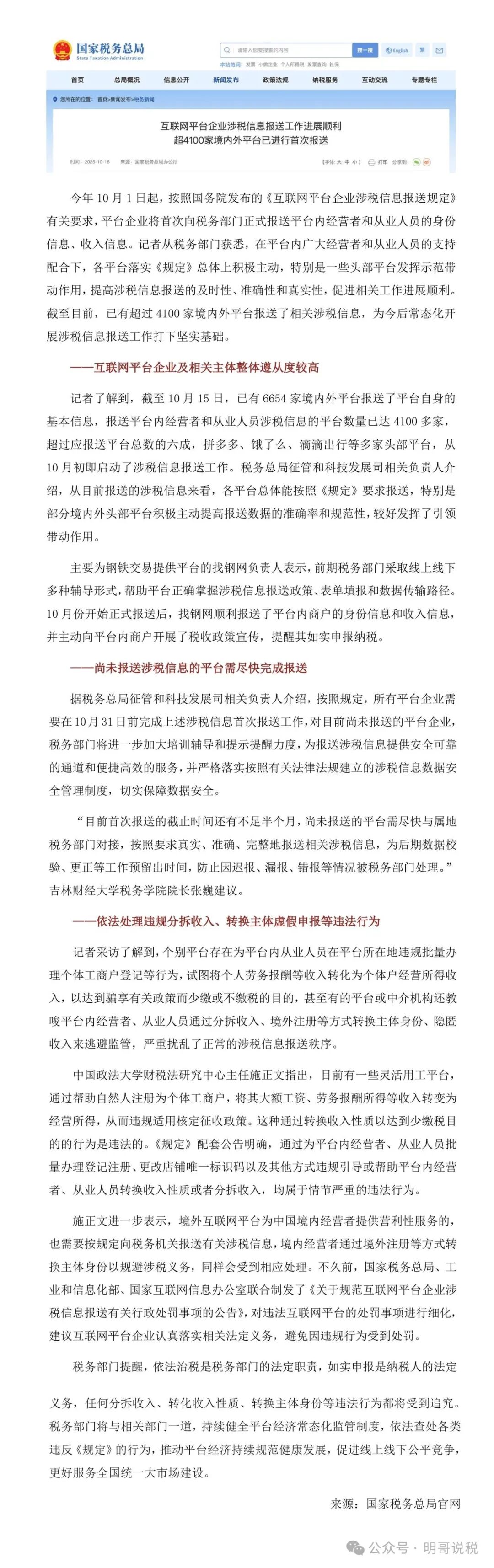进展顺利!超4100家境内外互联网平台企业已进行首次涉税信息报送