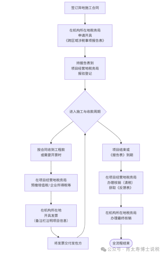 建筑企业异地施工外经证+开票+预缴+核销全流程详解(附流程图)