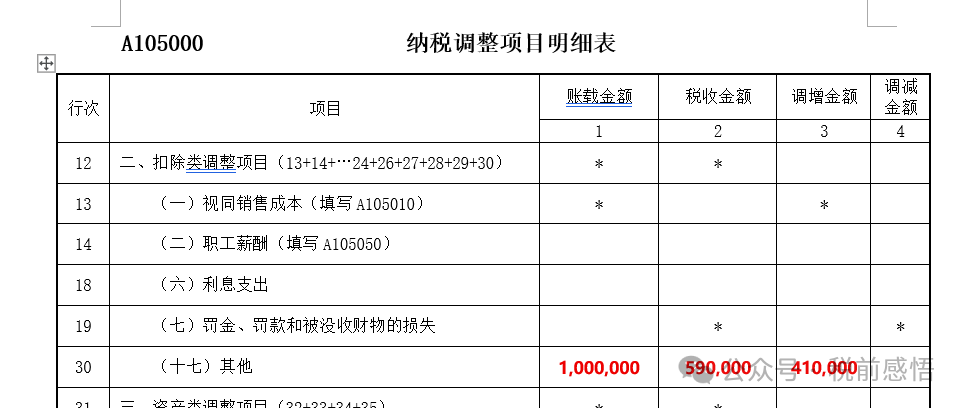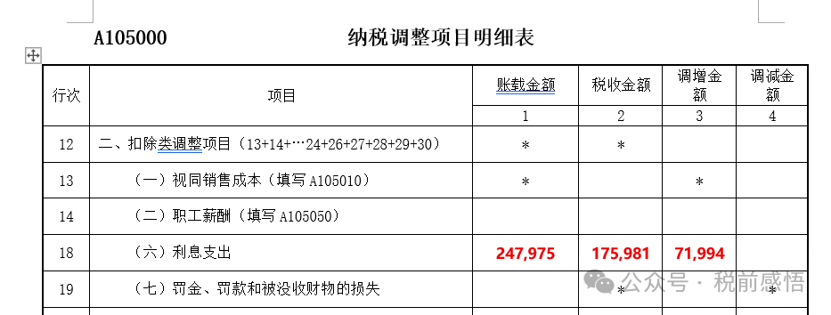 因A公司向金融企业借款,超出关联债资比的利息无需通过A105000《纳税调整项目明细表》第18行“利息支出”进行调整,而应填写第30行“其他”。
