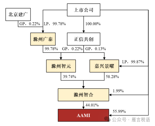 本次交易完成后,AAMI成为上市公司控股子公司,上市公司直接和间接持有 AAMI 约 99.97%股权,相关股权结构及控制关系如下图所示: