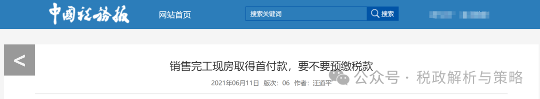 近期,某省住房和城乡建设厅官网发布城镇住房发展“十四五”规划,其中提出,要逐步提高商品房预售条件,稳妥推进现房销售试点,引发社会关注。实务中,越来越多的房地产开发企业开始探索,在房地产项目办理竣工备案后,再对外销售。这种情况下,不少房地产企业都面临一个问题:销售完工现房,取得首付款,要不要预缴土地增值税、增值税和企业所得税?